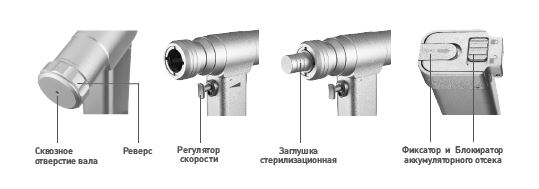 Многофункциональный набор инструментов для обработки костной ткани со сменными насадками и универсальным аккумуляторным приводом.