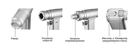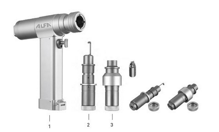 Набор Модель 20.11.1 для обработки костной ткани с универсальным аккумуляторным приводом и сменными насадками предназначен для сверления и пиления костной ткани.