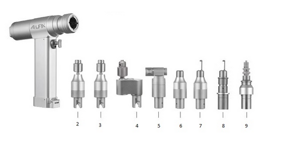 Набор Модель 20.12.1.200 для обработки костной ткани с универсальным аккумуляторным приводом и сменными насадками предназначен для сверления и пиления костной ткани.