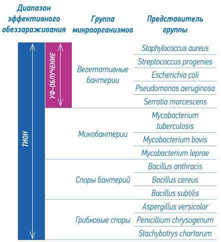 Сравнение диапазонов эффективного обеззараживания и инактивации микроорганизмов