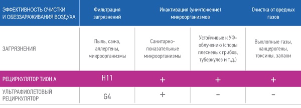 Сравнение в области обеззараживания и очистки воздуха