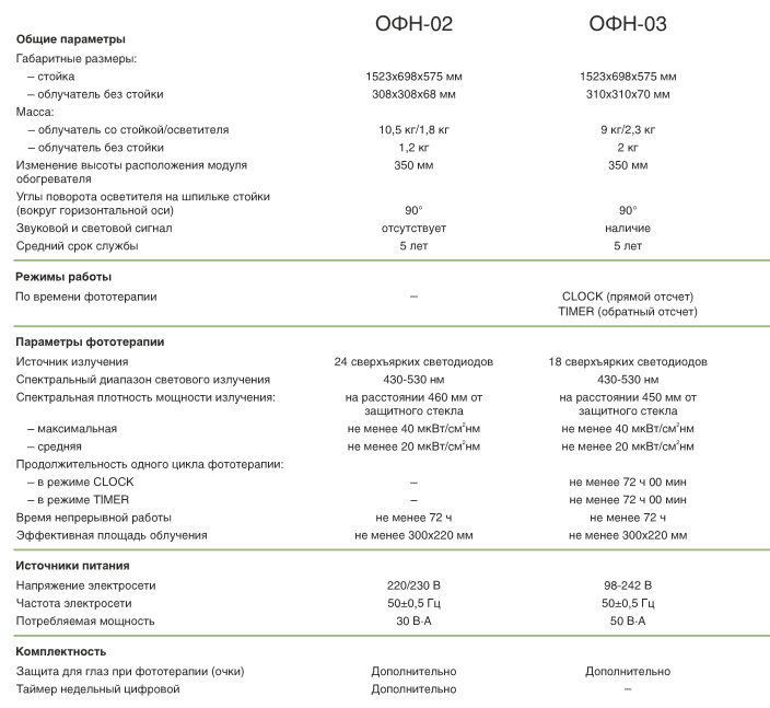 гипербилирубинемией. Изделия линейки ОФН удобно размещать в палатах с ограниченным свободным пространством.