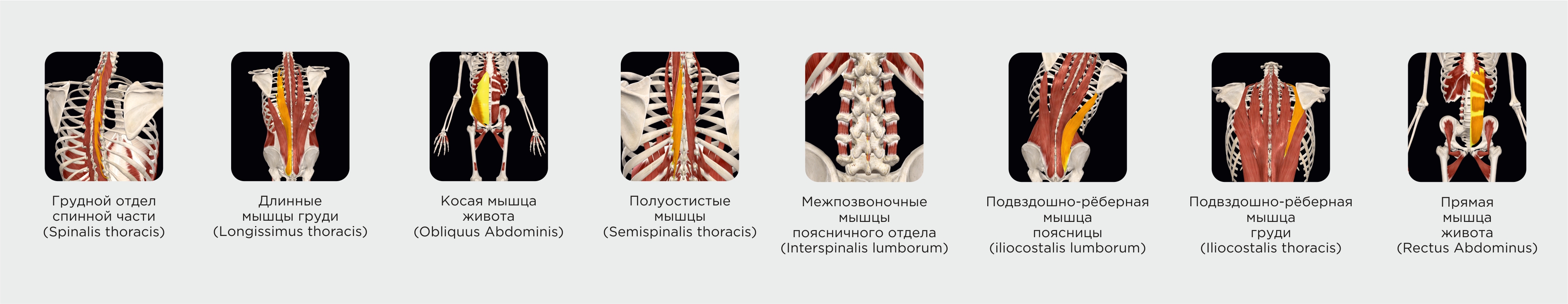 Тренируемые на «Ormed Strong Back Т010» мышцы и мышечные группы: