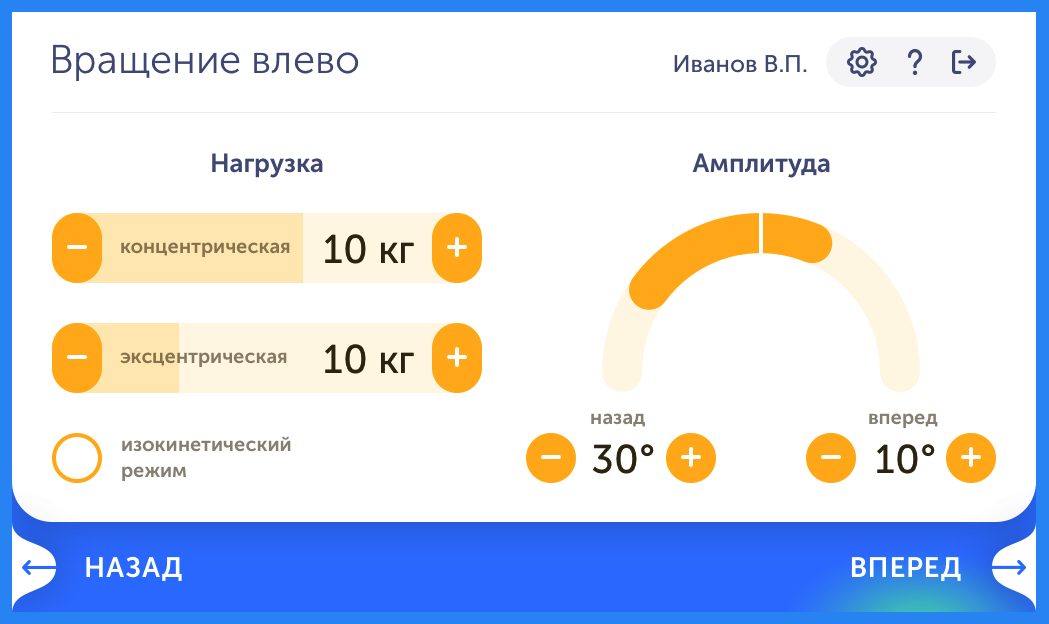 Система электронных ограничителей движения не дает пациенту выйти за пределы заданной амплитуды движения, что делает тренировку еще более безопасной.