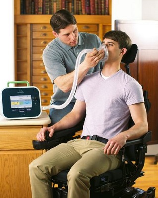 Неинвазивный аппарат Cough Assist E70 работает от сети переменного тока или аккумуляторных батарей и таким образом является по-настоящему мобильным прибором.