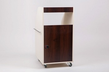 Тележка Атика имеет форму компактной тумбы. Модель является универсальной и многофункциональной, и может использоваться в качестве вспомогательной мебели в косметологическом, парикмахерском, массажном, маникюрном и педикюрном кабинетах. Низ оснащен колесиками, что позволяет мобильно и бесшумно перемещать изделие.