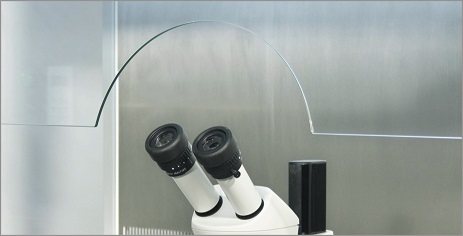 Фронтальное стекло изготовлено с прорезью под микроскоп. Форма и расположение прорези согласовываются с заказчиком.