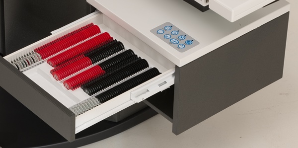 Эргономичный дизайн, уникальный механизм ручки создан для легкого и плавного перемещения подвижной платформы с прибором.