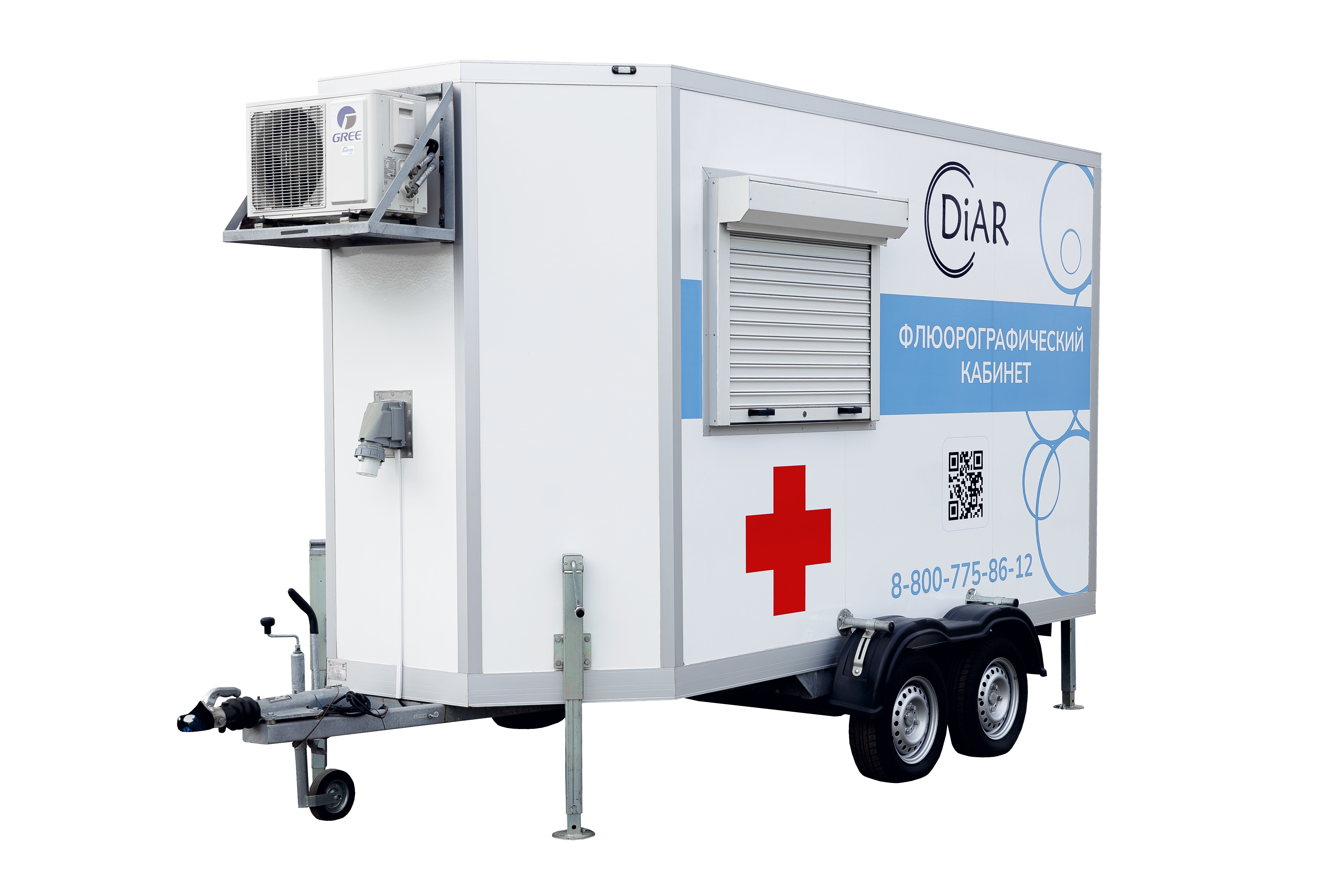 Специализированный прицеп предназначен для проведения флюорографических обследований. Возможность проведения полноценной диагностики вне специализированного помещения.