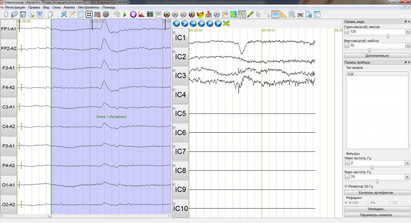 Возможности комплекса «Неврополиграф» в режиме просмотра и анализа ЭЭГ: