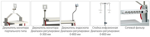 Стойка для аппаратуры СА-4 предназначена для размещения диагностического оборудования, приборов, инструментов и другого медицинского инвентаря в медицинских учреждениях