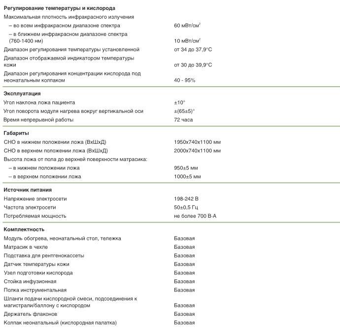 Обогрев новорожденных с возможностью проведения кислородотерапии, рентгенографии, переливания крови, инфузионной терапии, массажа сердца и других реанимационных мероприятий.