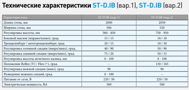 Стол операционный ST-D.IB (вар. 1) — Технические характеристики: