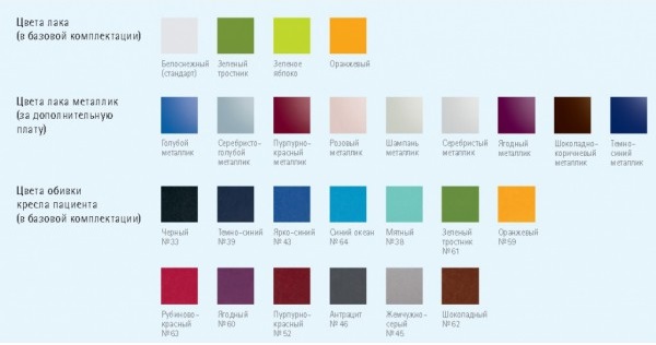 Расцветки обивки кресла пациента (в базовой комплектации):