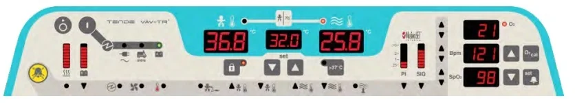 Модель VAV-TR оснащена самым современным и технологичным решением в области мониторинга периферической гемодинамики ребенка. На панели управления отображаются не только SpO2 и ЧСС, но и на выбор один из параметров Masimo Rainbow SET (SpO2): общий гемоглобин SpHb, карбоксигемоглобина SpCO, метгемоглобина SpMet и индекс вариабельности плетизмограммы PVI.