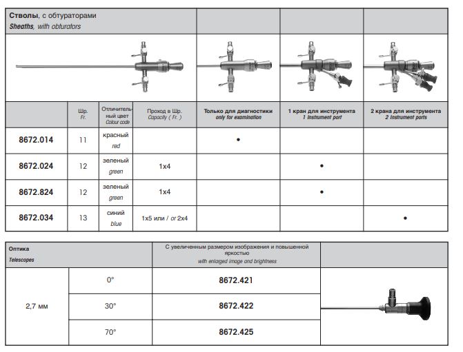 Цистоуретроскоп 8672 для оптики 2,7 мм