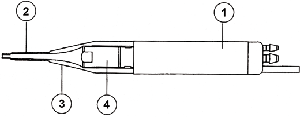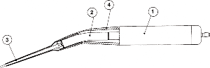 1-Сердечник фрагментатора, 2-наконечник, 3-удлинитель наконечника, 4-фиксатор
