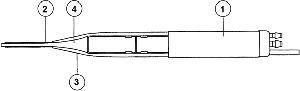 1-Сердечник фрагментатора, 2-удлинитель наконечника, 3-наконечник, 4-фиксатор