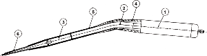 1-Сердечник фрагментатора, 2-удлинитель наконечника изогнутый, 3-наконечник, 4-фиксатор, 5-фиксатор удлинителя, 6-Ирригационный колпачок наконечника