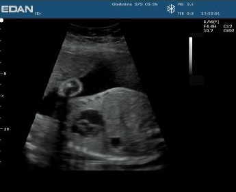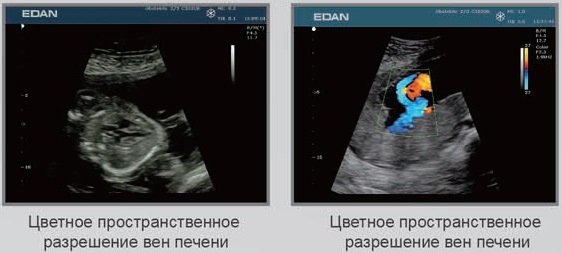 Пространственное смешение цветов и технология снижения проявлений артефактов в датчике C5-2b значительно улучшают визуализацию эмбрионального взаимодействия печени и легких. -