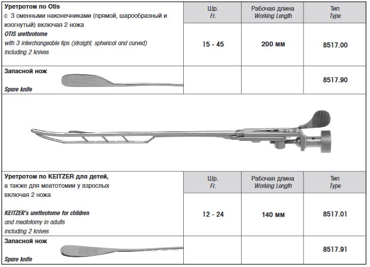 Классические уретротомы для рассечения стриктур мочеиспускательного канала.