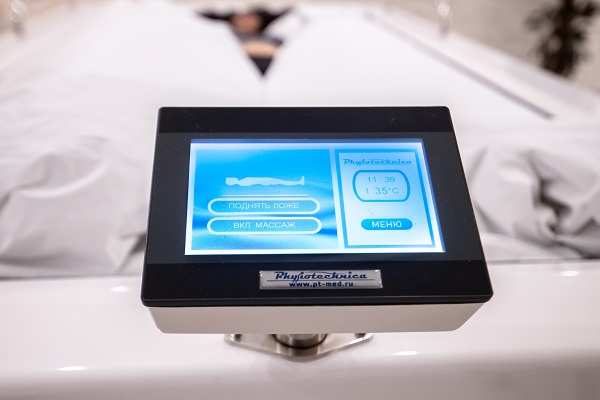 Ванна «Посейдон» оборудована поворотных цветных сенсорных ЖК дисплеем, с помощью которого осуществляется программирование всех режимов и непосредственно управление ходом процедуры медицинским персоналом: