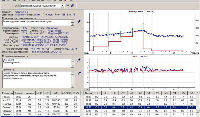 - • Регистрация и автоматическая интерпретация ЭКГ покоя с выявлением противопоказаний к проведению пробы;