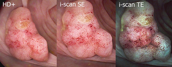Режим коррекции изображения i-scan с помощью встроенных фильтров и алгоритмов SE, CE и TE подчеркивает структуры сосудистой сетки, тканей и патологических изменений. А технология Twin Mode одновременно проецирует как изображение в белом свете, так и усиленное " i-scan" изображение. Благодаря этому ошибиться в постановке диагноза практически невозможно.