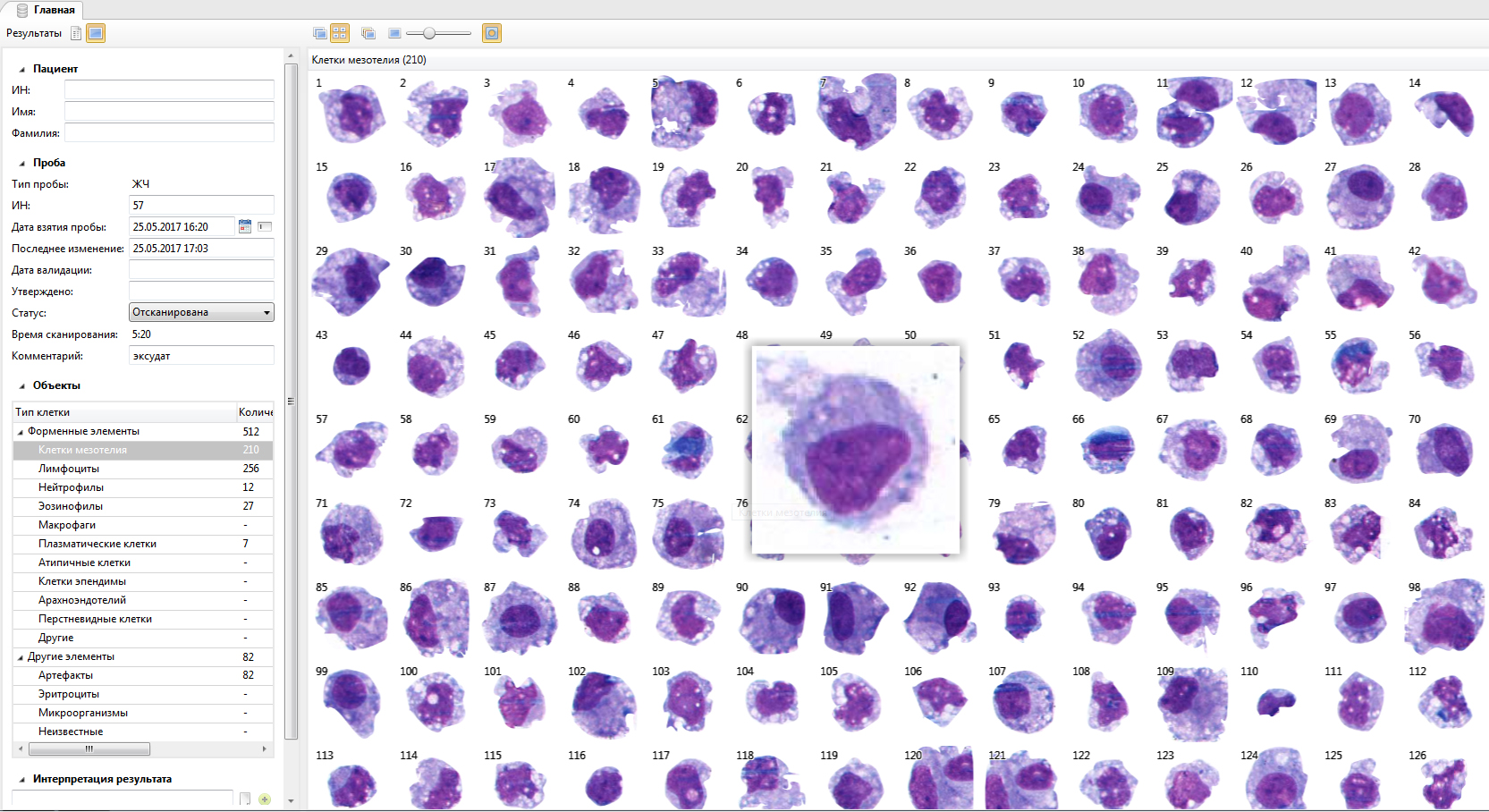 Идентификация и пре-классификация клеток в жидкостях человека.