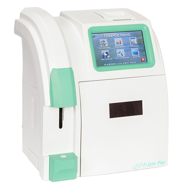 Анализатор электролитов крови E-Lyte Plus – автоматическое устройство, предназначенное для измерения электролитов по пяти параметрам (Na+, K+, Cl-, iCa, pH). Работа прибора основана на методе потенциометрии, позволяющем одновременно определять концентрацию различных ионов в исследуемой пробе. Анализатор отбирает пробу, выполняет её исследование и выводит результаты на дисплей. Для анализа используется плазма или сыворотка из пробирки.