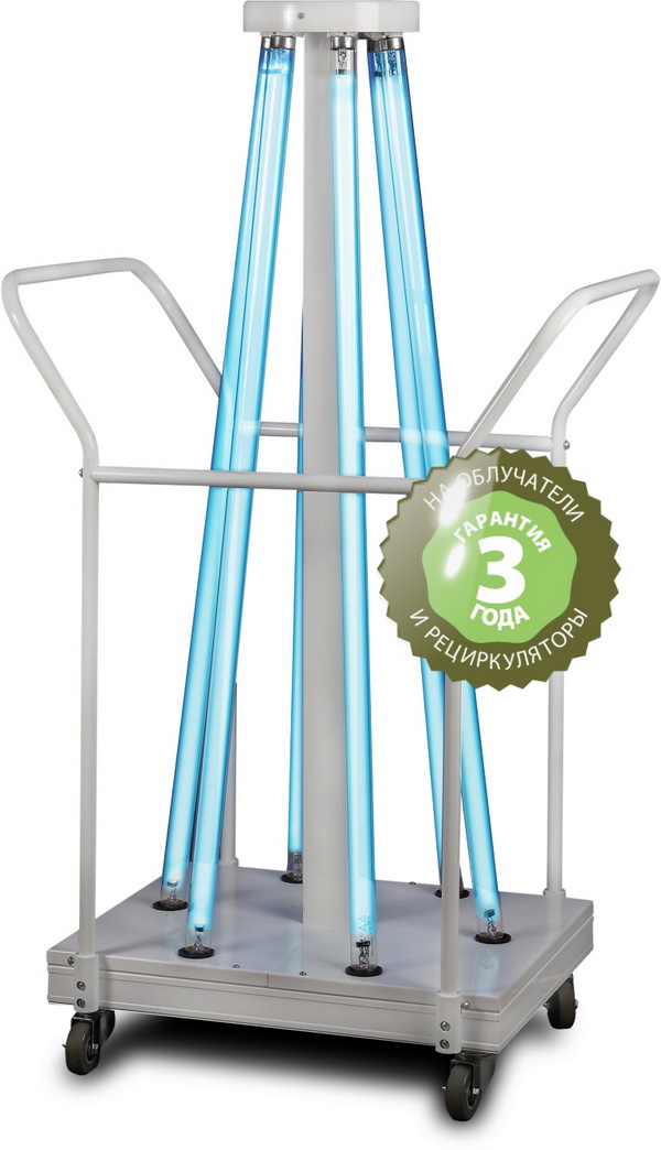 - равномерное обеззараживание поверхностей в помещении по всему объему от пола до потолка за счёт расположенных под углом 70 градусов ламп;