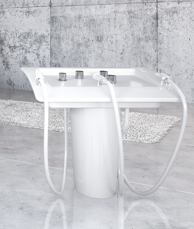 Кафедра с подведённой горячей и холодной водой оснащается двумя массажными пистолетами с автоматическими смесителями. Пистолеты вращаются в двух осях, позволяя направлять струи воды в нужную сторону.