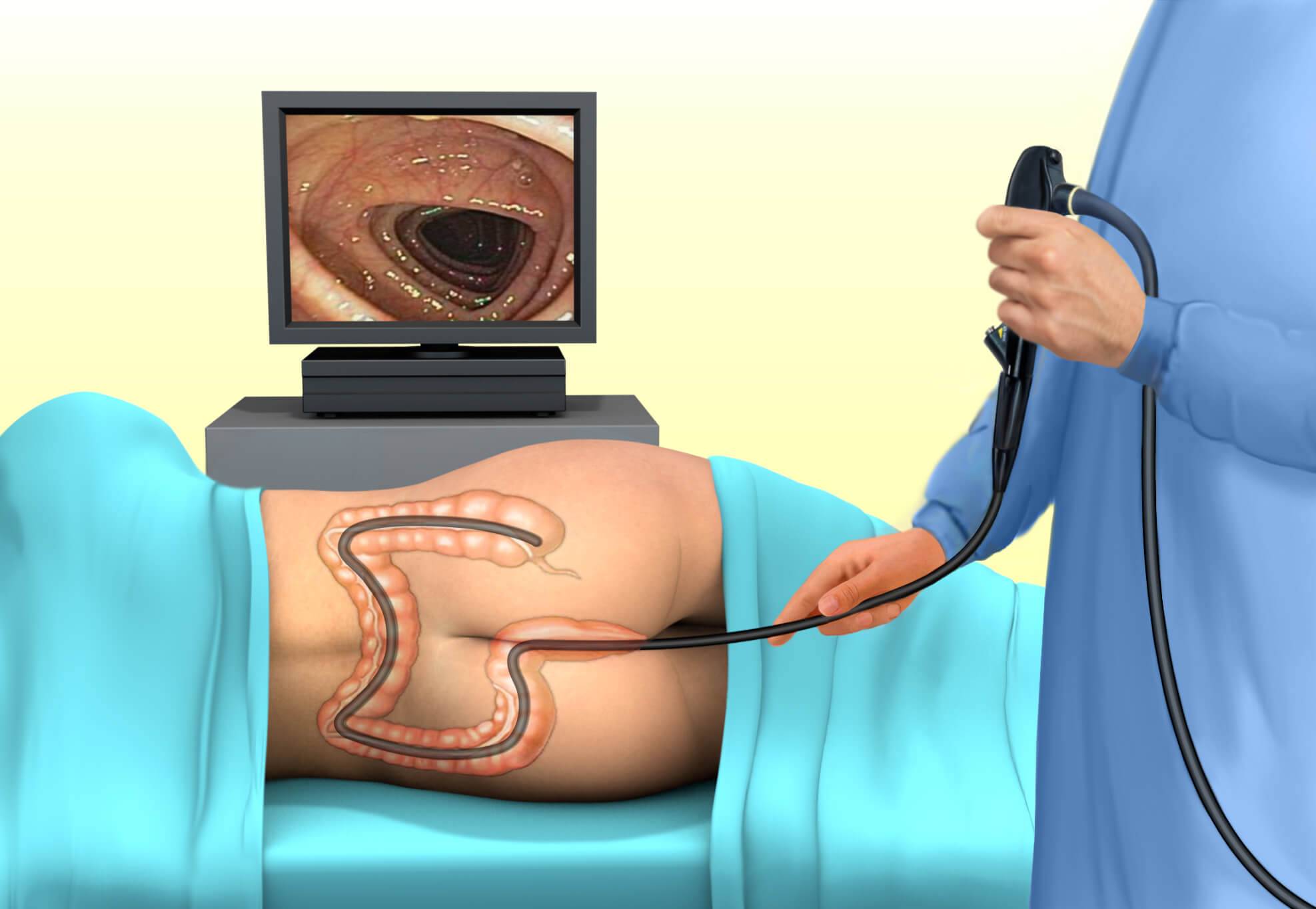 Принцип работы колоноскопа основан на погружении его дистального конца вместе с трубкой в кишечник на определённую глубину. Аппарат вводится через анальное отверстие, а расположенный внутри него гибкий световод распространяет световые лучи по направлению к дистальному концу. В обратном направлении передаётся видеосигнал, который преобразуется и выводится на монитор. Современная оптика обеспечивает качественную визуализацию внутренних структур. Врач получает полный обзор участка, находящегося в кишечном просвете.