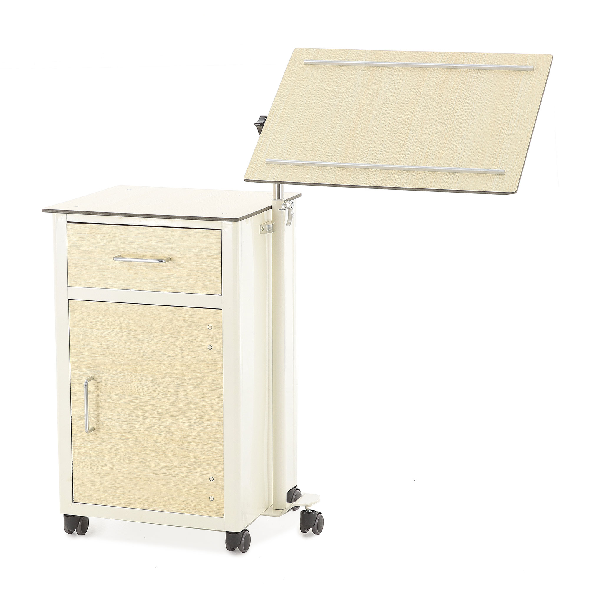 Тумба прикроватная с поворотной столешницей из HPL-пластика ПТ-001 – функциональная и практичная медицинская мебель, облегчающая уход за пациентами и обеспечивающая максимальный комфорт для пользователей. Тумбу можно использовать для выполнения медицинских процедур, приёма пищи, чтения. Вместительные ящик и ниша позволяют хранить личные вещи и медикаменты в непосредственной близости от кровати. Поворотная столешница со вставками-бортиками вращается на 360° и имеет наклон 90°. Каркас тумбы выполнен из стали, столешница – из HPL-пластика. Для удобства перемещения предусмотрены колёса с поворотным механизмом. Тумба можно использовать для оснащения стационаров, санаториев, домов отдыха.