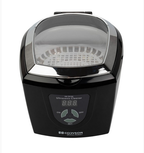 CD-7810A – ультразвуковая ванна без подогрева от китайского производителя CODYSON, предназначенная для очистки металлических и пластмассовых предметов от жировых, органических и прочих загрязнений. Работа устройства основана на эффекте кавитации – образовании и схлопывании пузырьков воздуха в рабочей жидкости, в результате чего происходит удаление лишних частиц с поверхности. Объём ванны составляет 750 мл, этого вполне достаточно для очистки стоматологических приспособлений, медицинских инструментов, маникюрных и парикмахерских принадлежностей, ювелирных изделий.