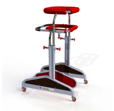 - Статичные вертикализаторы, обеспечивающие возможность передвижения в положении стоя при помощи обслуживающего персонала. Иногда такие системы могут оснащаться маленькими колёсами для перемещения внутри помещения. Ортопедическая обшивка позволяет пациенту принять наиболее комфортное и безопасное положение. Оборудование рекомендовано при диагностированном парезе и параличе конечностей.