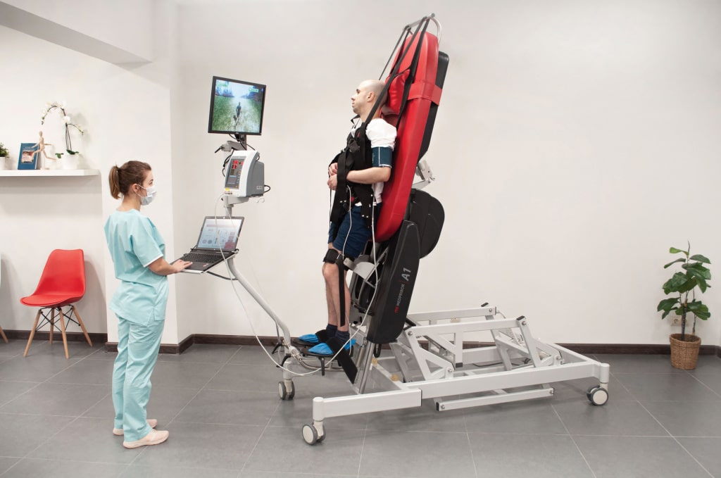 Роботизированный стол-вертикализатор А1 – система для тренировок пациентов с гиподинамией и иммобилизационным синдромом, помогающая устранять мышечный спазм и улучшать подвижность суставов нижних конечностей. Это российская разработка, предназначенная для ранней активизации на первых этапах восстановления после эндопротезирования тазобедренных суставов, черепно-мозговых травм, инсультов, сердечно-сосудистых патологий, поражения периферической и центральной нервной системы.