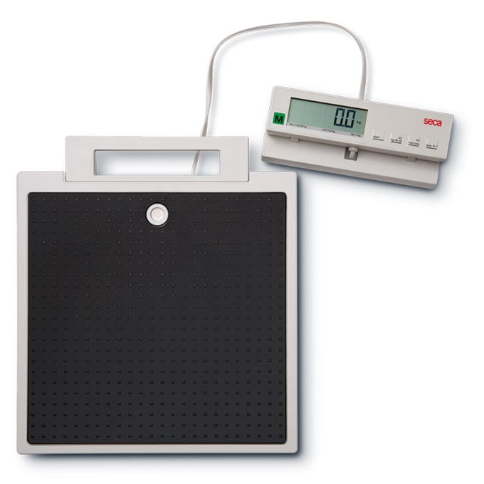 Напольные весы SECA 869 – напольная платформенная модель с выносным дисплеем, предназначенная для использования в поликлиниках, больницах, лечебно-профилактических учреждениях. Одна из главных особенностей этих весов – выносной дисплей, который можно закрепить на стене или установить на столе. Для соединения дисплея и платформы предусмотрен двухметровый кабель. Весы можно установить на любой поверхности, выравнивание по высоте пола выполняется за счёт регулируемых ножек.
