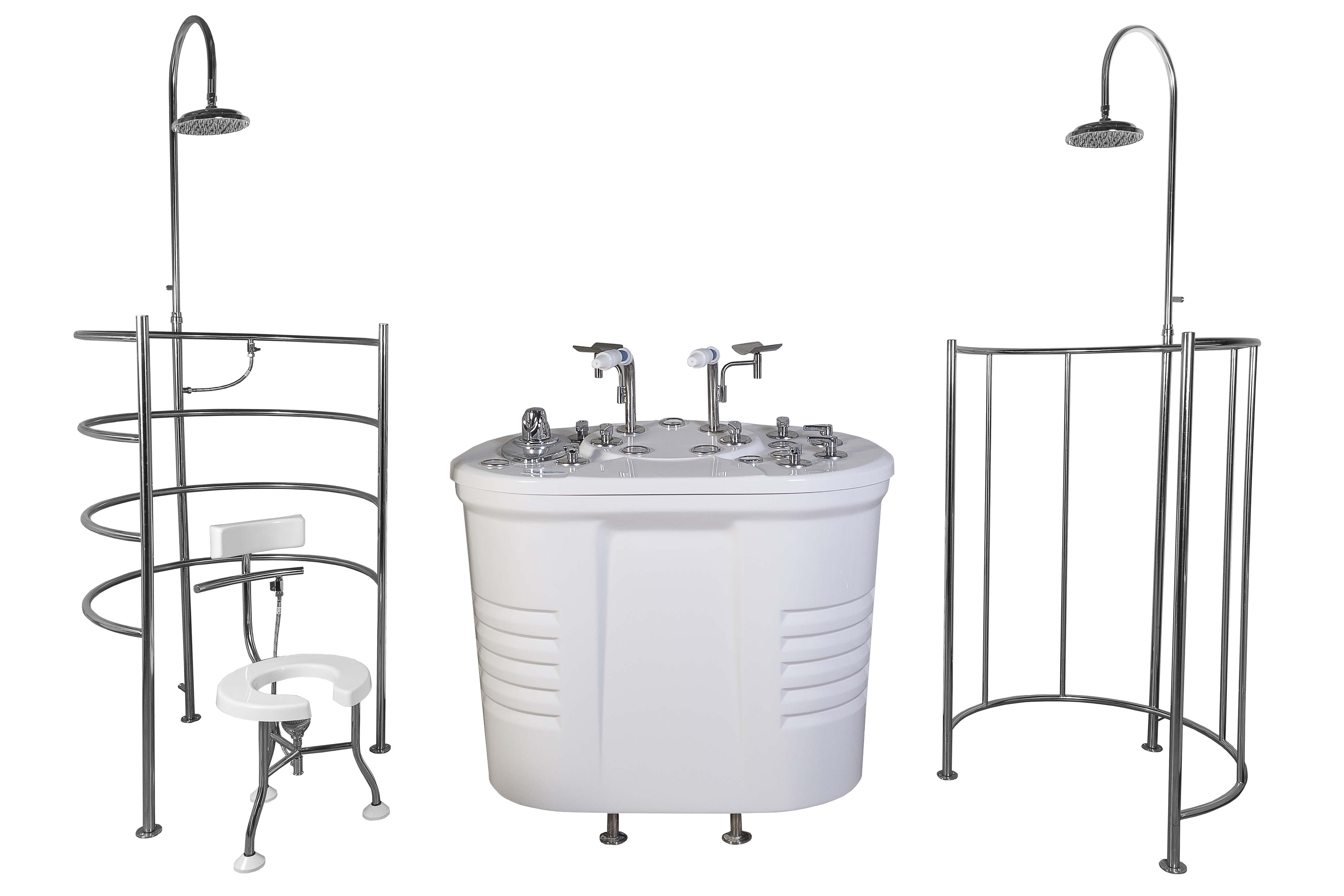 Кафедры позволяют проводить одновременно несколько процедур. Для удобства проведения водолечебных процедур и комфорта пациента кафедры могут оснащаться отбойными экранами и шторками.
